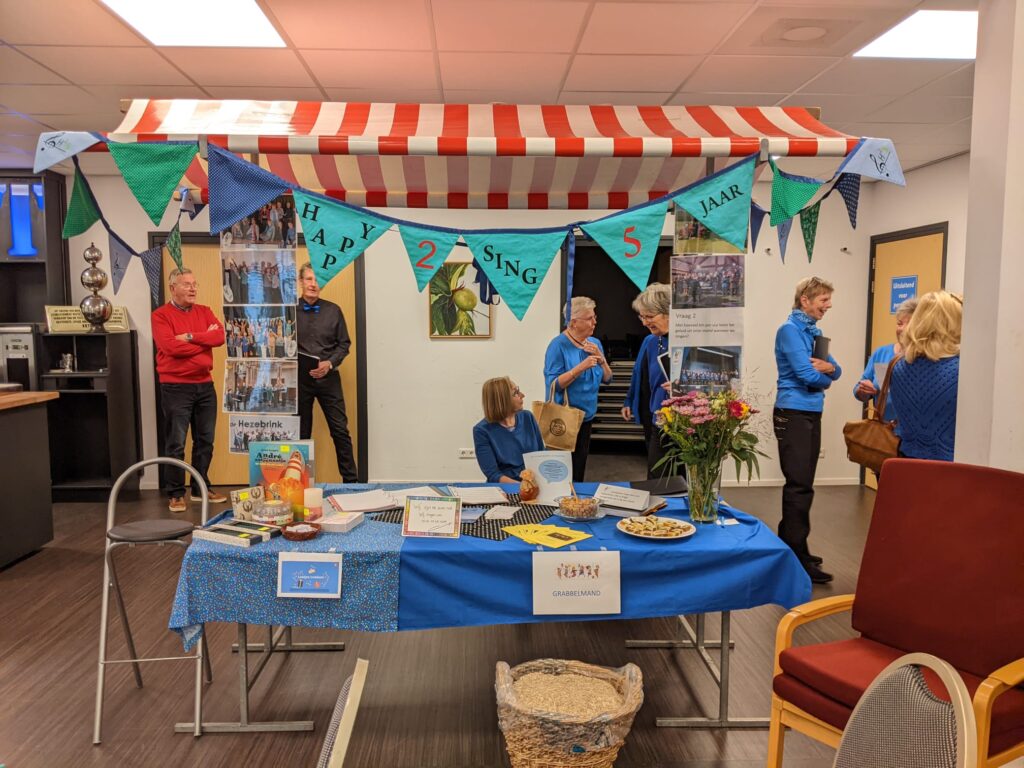 inkomen. Bij onze prachtig ingerichte kraam, meldde zich gelijk al een nieuw (aspirant)lid. Ze komt een paar keer meezingen en kan dan beslissen of ze lid wordt.